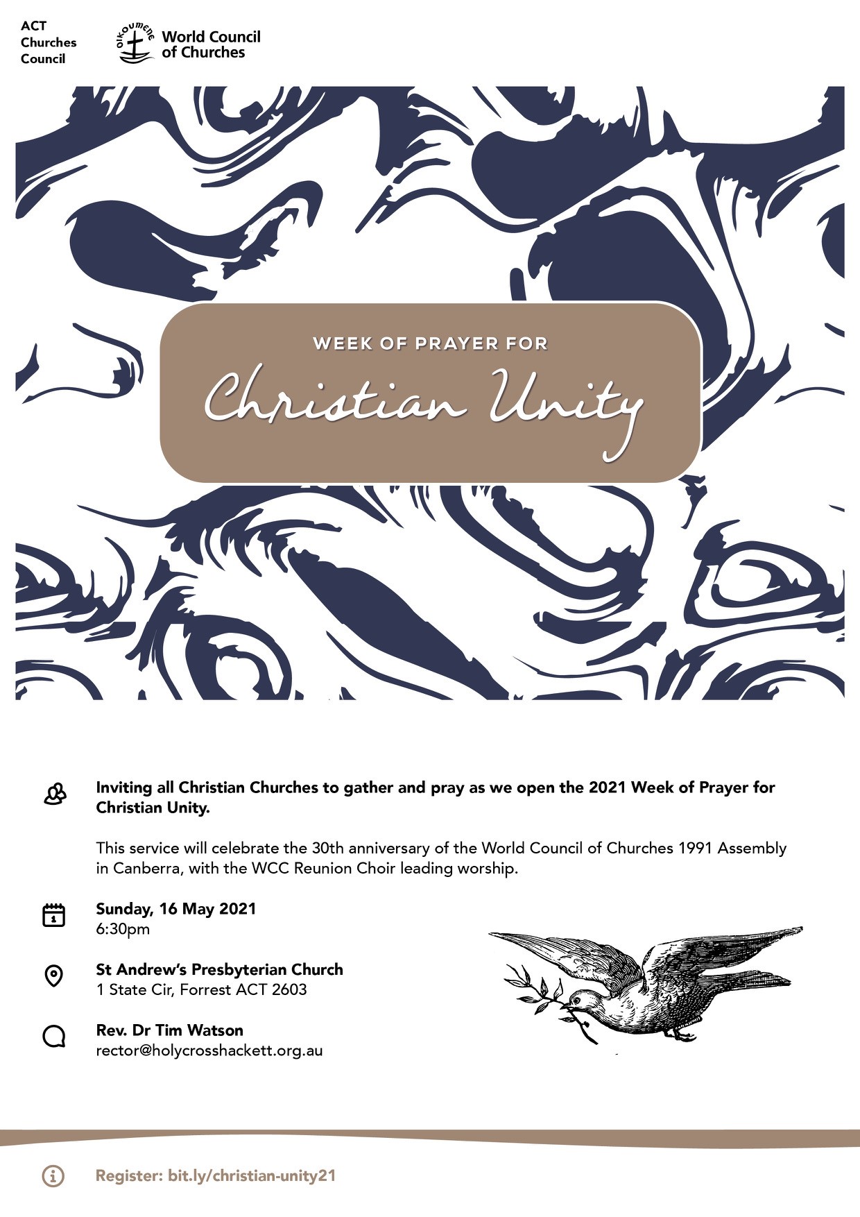 Acknowledgement: These resources in Australia are based on the international material for the 2021 Week of Prayer for Christian Unity produced by the World Council of Churches. They have been adapted for use in Australia by the Faith and Unity Commission of the National Council of Churches in Australia.
