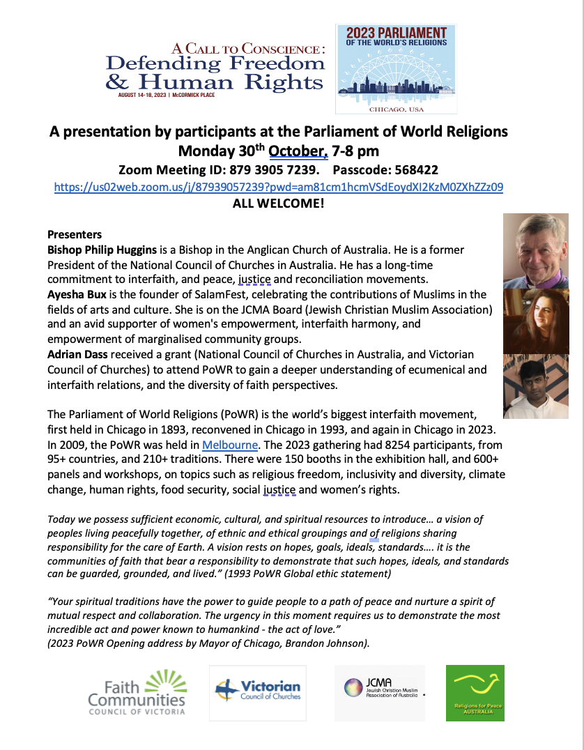 A presentation by Australian participants at the Parliament of World Religions, Chicago in August 2023.